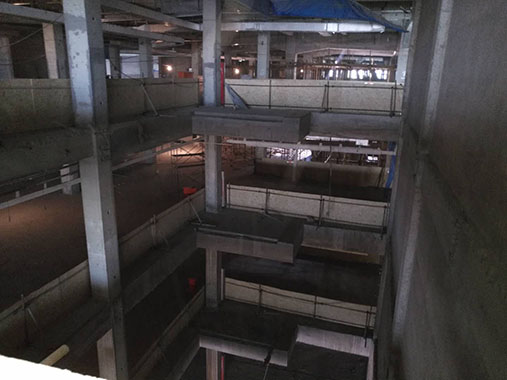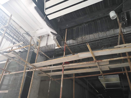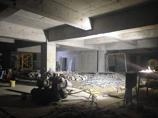 主要施工內(nèi)容:主要為商場改造加固工程,新增中空、新增扶梯、新增電梯、原有中空封堵等施工,主要包括梁柱擴(kuò)大截面加固、梁柱壓力注膠粘鋼加固施工、新增梁板、梁碳纖維加固施工等。